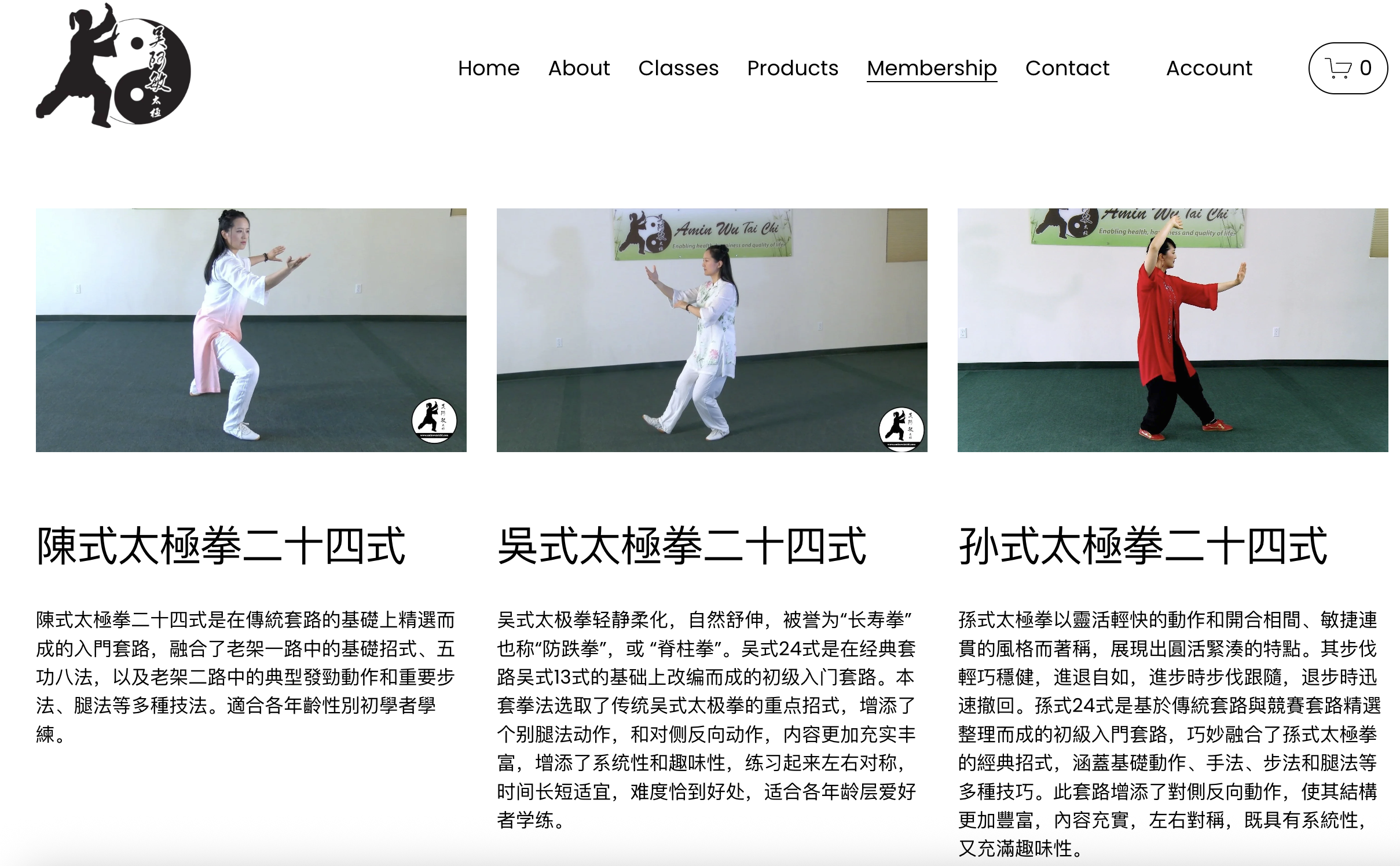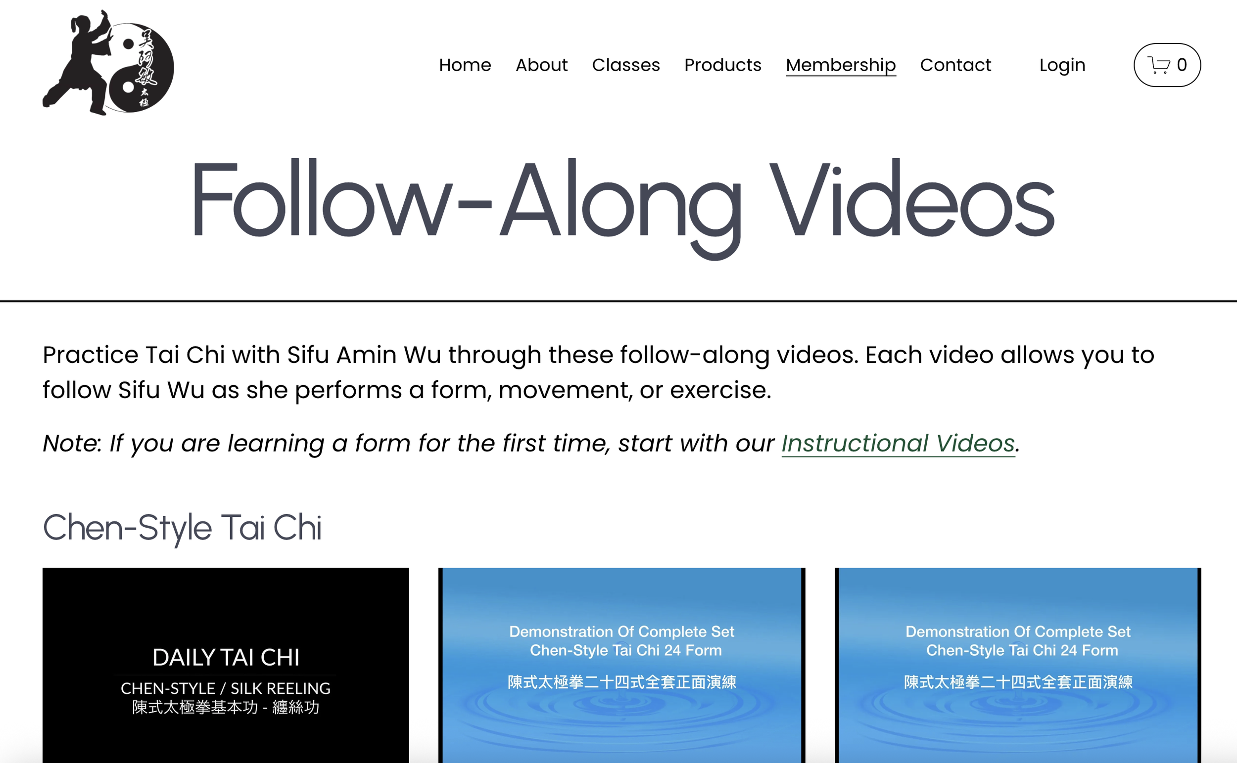 The first new feature under Membership is Instructional Videos, which provides a visual guide to our full library of instructional videos, along with short descriptions to help you find the Tai Chi courses that interest you.